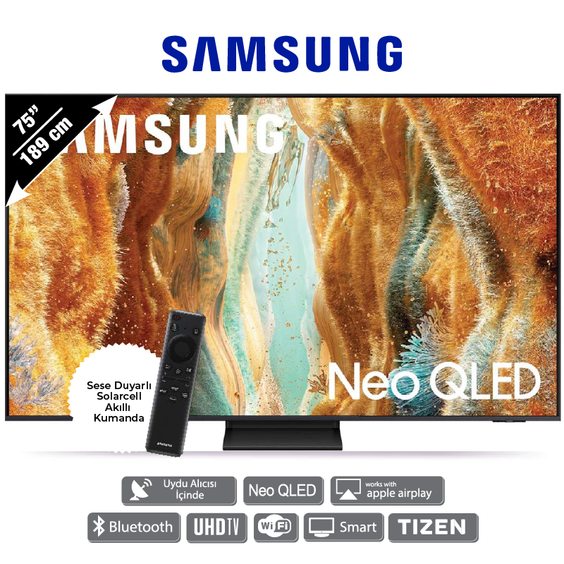 3840×2160p 4K UHD çözünürlük, Neo QLED ekran teknolojisi, Mini LED aydınlatma, 120 Hz ekran yenileme hızı, HDR10+ ve HLG desteği, 4×HDMI 21 ve 2×USB bağlantı girişi, Dolby Atmos ve OTS Lite ses teknolojisi, Neural Quantum 4K işlemci, Tizen işletim sistemi, Smart TV ve Oyun Modu özellikleri